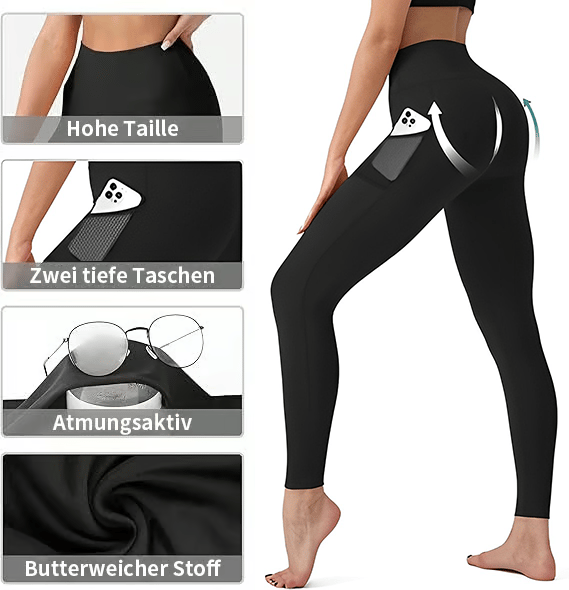Eine neue Wahl für Formgebung: hoch tailliert und mit Bauchkontrolle, seitliche Taschen für mehr Bewegungsfreiheit. Diese Leggings bestehen aus hochwertigen Stoffen, die sich der Haut anpassen und die perfekte Körperkurve zur Schau stellen. Das hoch taillierte Design strafft effektiv den Bauch und formt eine schlanke Taille; das seitliche Taschen-Design ist praktisch und bequem, um kleine Gegenstände zu verstauen. Egal ob beim Fitness, Yoga oder im Alltag, sie sind die perfekte Kombination aus Mode und Praktikabilität. Wähle uns, um dein jedes Training voller Selbstvertrauen und Charme zu gestalten!