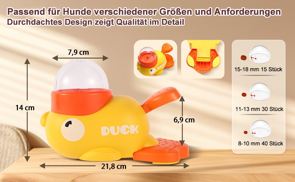 ✅ Interaktive Leckerli-Ausgabe: Drücken Sie auf den Schwanz der Ente, um den rotierenden Futterbehälter zu aktivieren, der nach dem Zufallsprinzip Leckerlis freigibt. Dieses Futterpuzzle für Hunde erhöht die Aufmerksamkeit, verringert die Langeweile und fördert die geistige Stimulation. Er ist ideal für kleine und mittelgroße Hunde, große Hunde benötigen möglicherweise zusätzliche Stabilität. Es ist ein Training erforderlich, um Ihrem Hund zu helfen, den Spender zu aktivieren. Diese Funktion sorgt für eine längere Beschäftigung und ein interaktives Essenserlebnis.