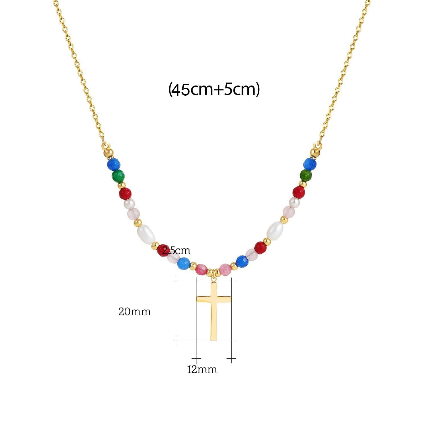 Es ist im Boho-Minimalismus-Stil gehalten, sieht beim Tragen wunderschön aus und zieht mit seinen schönen Steinen und dem Kreuz viel Aufmerksamkeit auf sich. Eine perfekte Idee für ein Geschenk oder für Sie selbst!